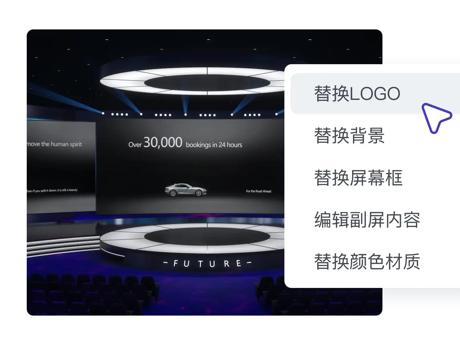 完全可以。这是我们产品的核心优势之一。大部分场景支持在线深度编辑,您可以轻松替换品牌Logo、标语文字、主色调以及显示或隐藏特定道具,让通用模板快速变成您的品牌专属场景,实现高效个性化。