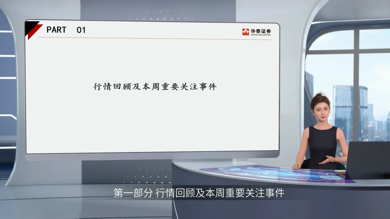 尊敬的各位领导、老师,大家早上好!我是数字人小佳,今天将由我为大家汇报本周的市场行情、重要事件以及配置观点。