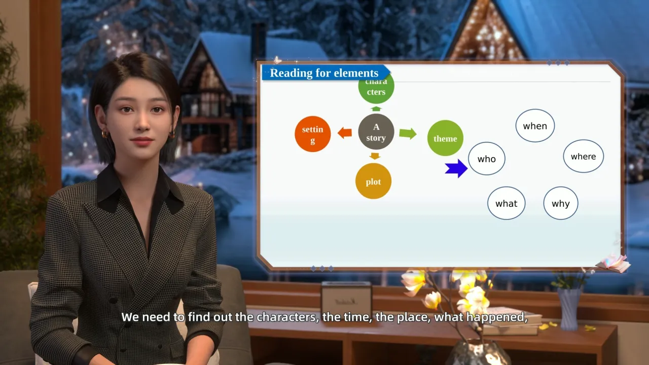 Let's start reading for the elements. We need to find out the characters, the time, the place, what happened, and why, which is related to the plot and the theme of the story.