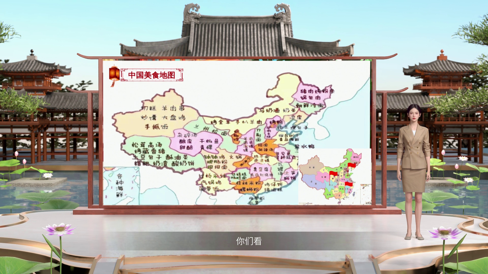 你们看,屏幕上出现的中国地图和大家平时见到的地图有什么不一样