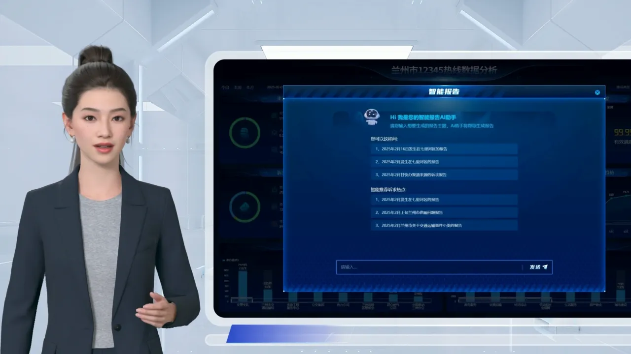 例如用户仅需输入 "2025年2月兰州市供暖相关问题" 等自然语言指令 系统即可完成“意图解析”、“报告要素提取”和“智能生成”三个核心步骤