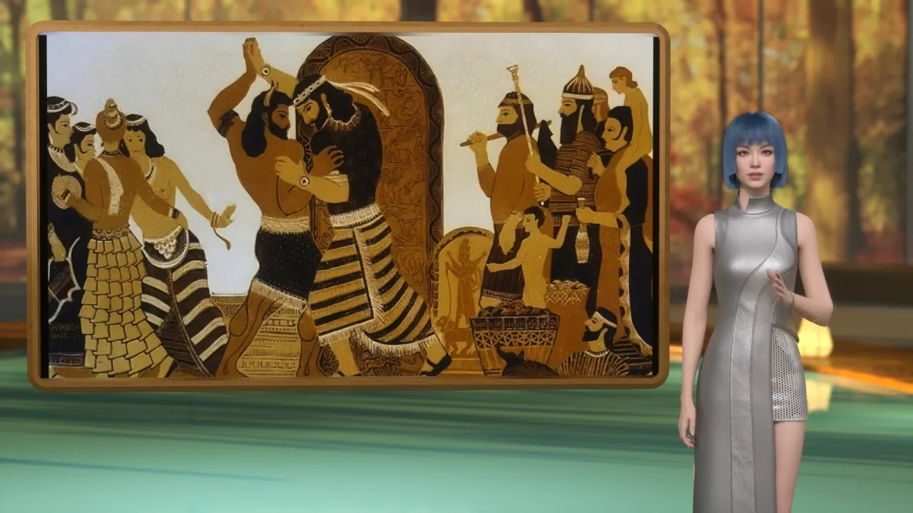 同学们大家好,今天我们来了解一下世界上最早的史诗《吉尔加美十》的故事 吉尔加美十是西亚城邦乌鲁克的国王,早年的他傲慢残暴,导致百姓苦不堪言。于是天神便造出了半人半兽的英雄恩奇嘟来惩罚他。但是在激烈的战斗中他们二人惺惺相惜,最终成为好友。之后两人决心造福于民,他们联手制服了森林中的食人怪兽和引发地震的天牛。但是因为吉尔加美十拒绝了爱神的求婚令其蒙羞,因此众神降下诅咒,两人之中必须有一人丧命,最终恩奇嘟死去。他的死让吉尔加美十感到了死亡的可怕,于是便踏上了寻找不死草的旅程,历经千辛万苦,他终于寻获了不死草,但却在归途中被蛇吃掉,从此蛇可以通过蜕皮获得重生。而吉尔加美十也最终意识到,死亡是人类必然的结局,与其追求永生,不如建功立业,去寻求现世的意义。