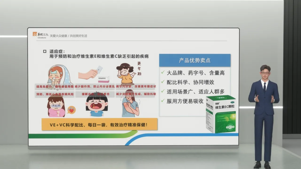 维生素C和维生素E是人体必需的维生素,维生素E和维生素C缺乏可引起内分泌失调,免疫力下降、心血管疾病风险增加,999维生素EC颗粒,通过科学配比每袋含有维生素E100毫克、维生素C200毫克,一天一次,对于感冒患者,服用维生素EC颗粒,可有效提高机体免疫力,缩短感冒周期。使用紧急避孕药的女性,可通过服用维生素EC颗粒,减少避孕药副作用,防止内分泌紊乱。对于更年期患者服用维生素EC颗粒可改善更年期症状,心血管疾病患者,服用维生素EC颗粒可降低心血管不良事件发生率。对于口腔溃疡或皮肤易过敏患者,服用维生素EC颗粒,能促进溃疡愈合、缓解炎症,辅助抗过敏功效。