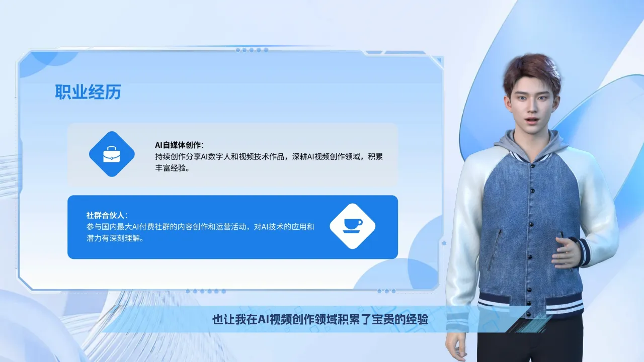 因此,我在AI领域和培训行业积累的经验以及各项优势,会让我根据客户需求创作出更优质的3D数字人视频。