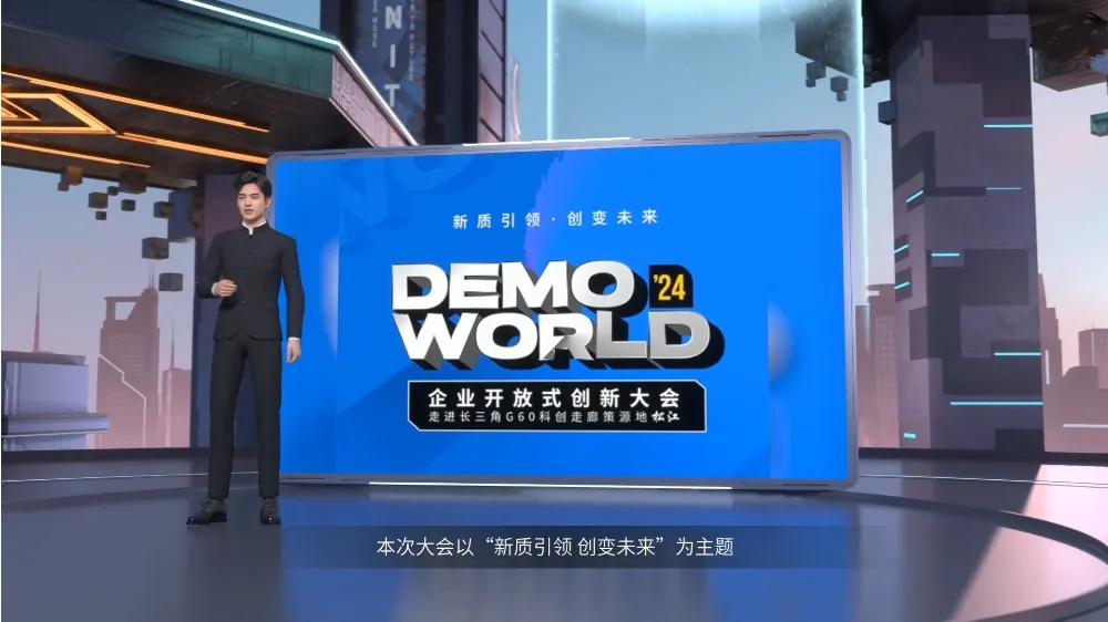 高质量的场景+超写实3D虚拟人角色,助您轻松生成线下活动亮相主持视频。
