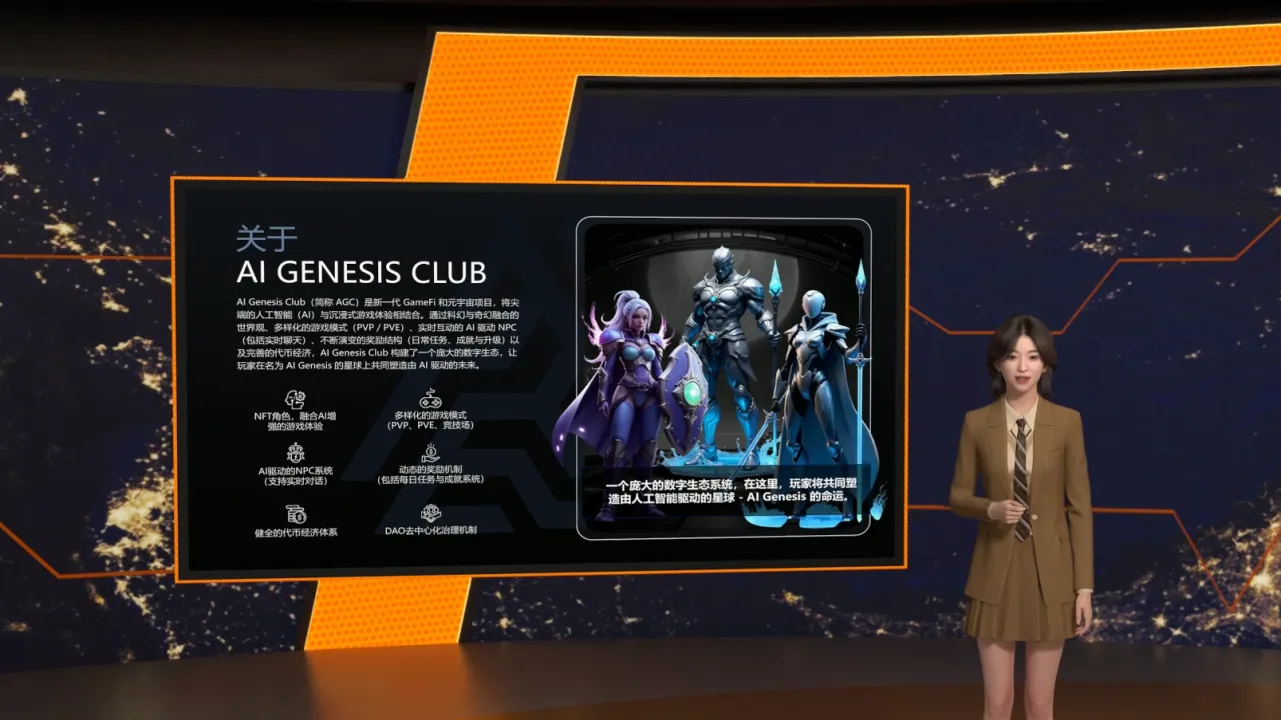 AI Genesis Club(简称AGC)是新一代GameFi和元宇宙项目,将尖端的人工智能(AI)与沉浸式游戏体验相结合。世界观、多样化的游戏模式(PVP / PVE)、实时互动的AI 驱动NPC,(包括实时聊天)、不断演变的奖励结构(日常任务、成就与升级)以及完善的代币经济,AI Genesis Club 构建了一个庞大的数字生态,让玩家在名为AI Genesis 的星球上共同塑造由AI 驱动的未来。