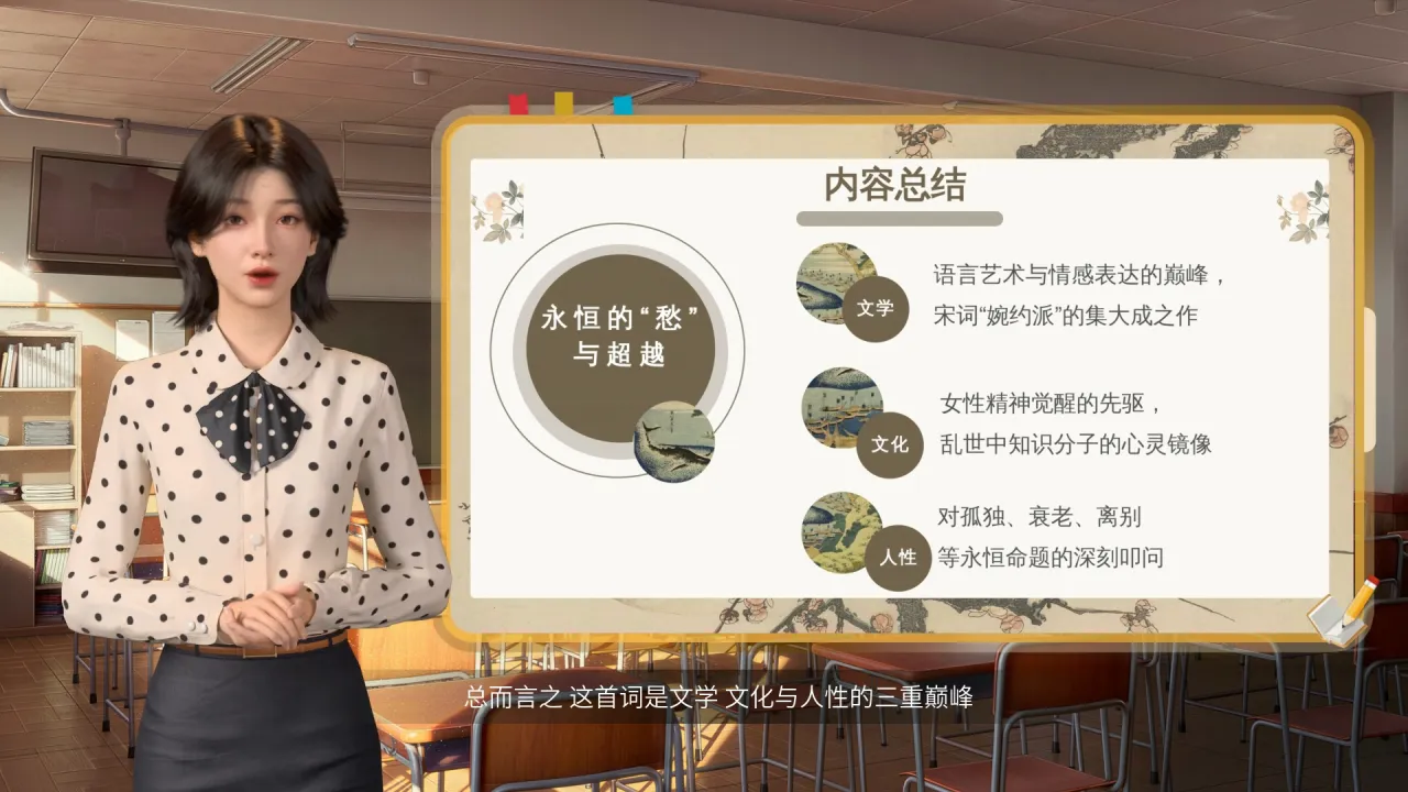 同学们早上好,今天我们来一同走进宋代才女李清照的经典词作《声声慢》,探讨其背后的文学价值与千年影响。