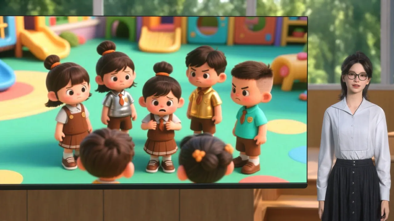此视频模板为幼儿园老师向小朋友科普什么样的行为算是霸凌同学,以及如何正确与小朋友沟通。