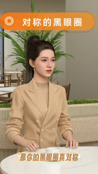 我稍停顿一下,随口说,那你的黑眼圈真对称。欢迎关注,一本正经的幽默!谢谢!