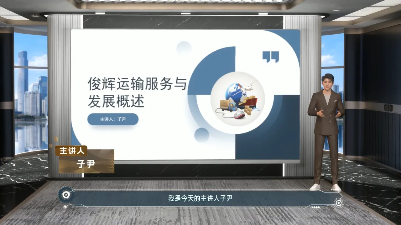 尊敬的各位领导、同事们,大家好!我是今天的主讲人子尹,我非常荣幸能在这里为大家介绍我们俊辉运输的服务与发展。随着全球经济的蓬勃发展,物流运输作为连接生产与消费的重要纽带,其重要性日益凸显。我们企业始终秉承“安全、高效、专业、服务”的理念,致力于为客户提供最优质的运输解决方案。