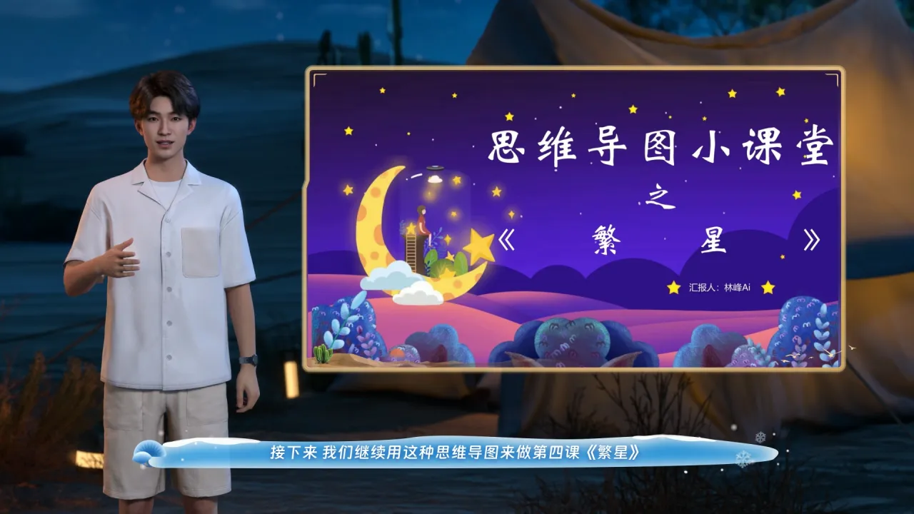 中心主题是:繁星,一级标题是三个时间和地点