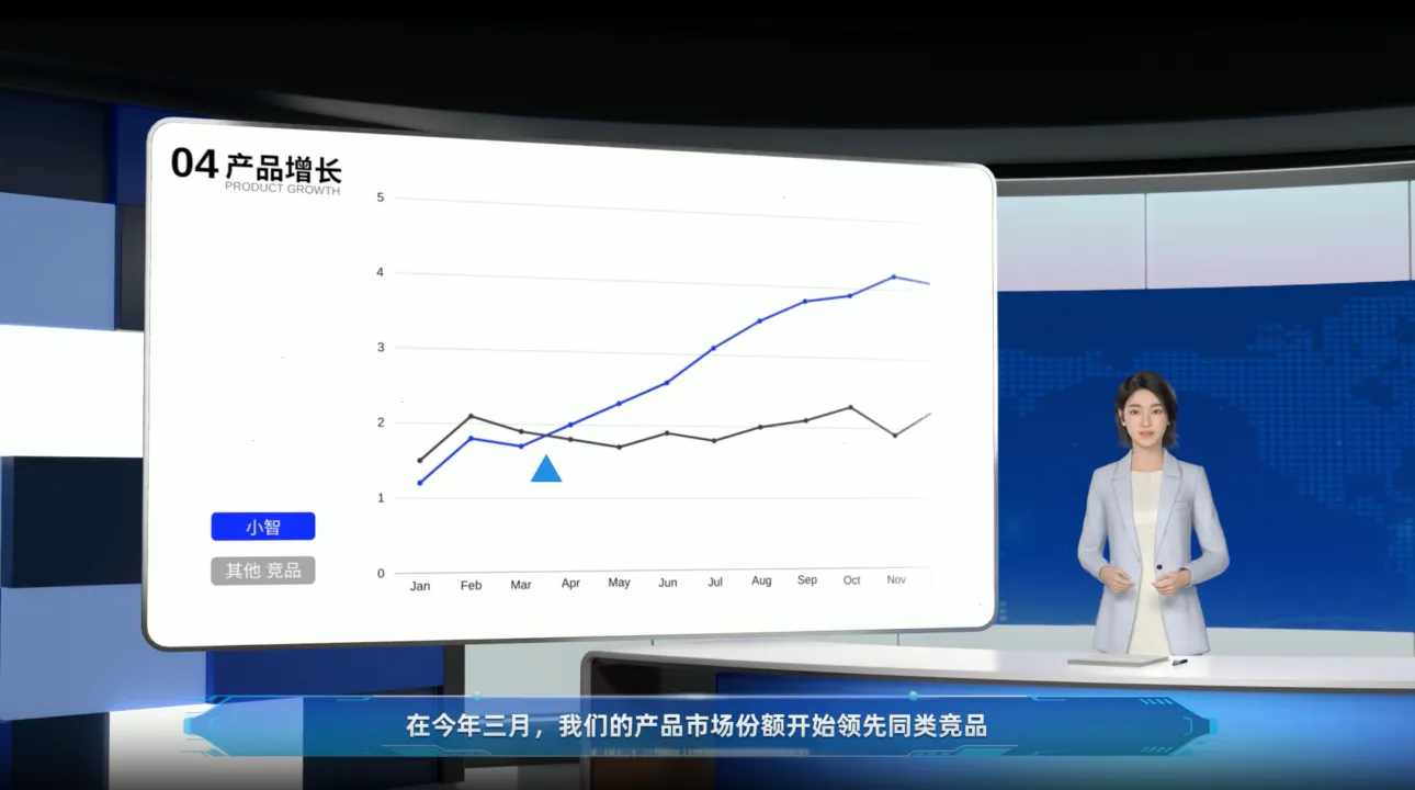 在今年三月,我们的产品市场份额开始领先同类竞品,预计在今年12月,市场份额指数突破4.0。