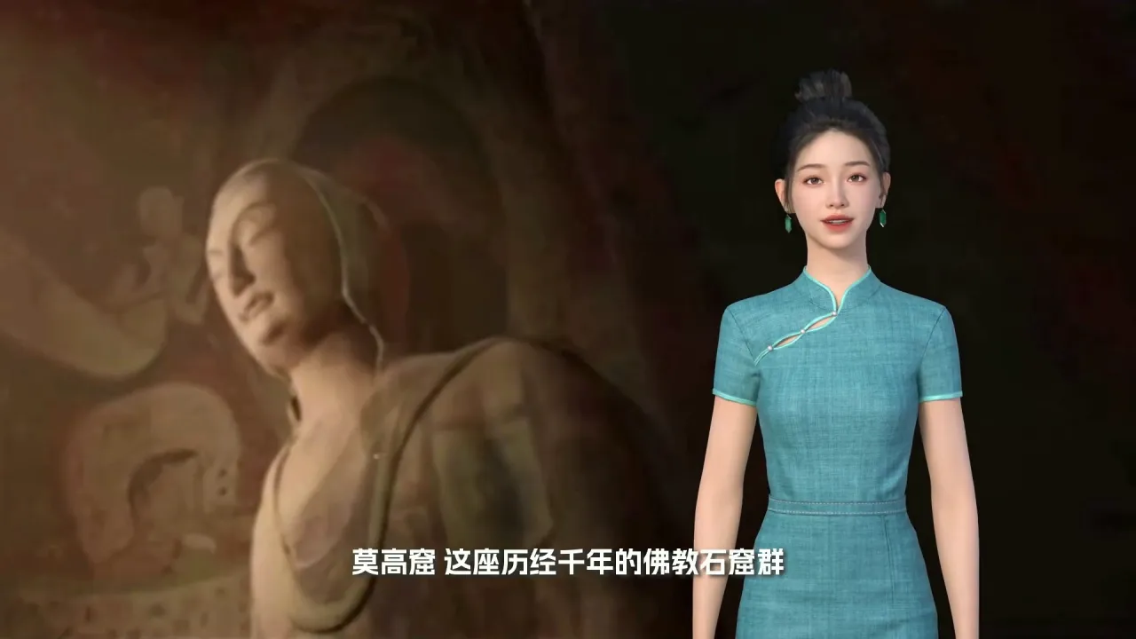 欢迎来到敦煌——丝绸之路上的璀璨明珠,这里见证了千年的文化交流与融合。我是数字人导游乃芙,今天将由我带您走进敦煌研究院,了解它如何守护这片珍贵的文化瑰宝。