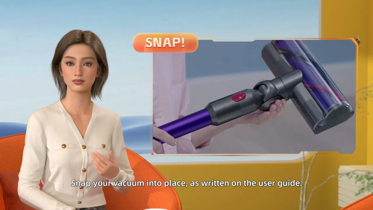 First, let's take a look at what's inside the box. Snap your vacuum into place, as written on the user guide. Be careful not to apply too much pressure, it may damage the vacuum!