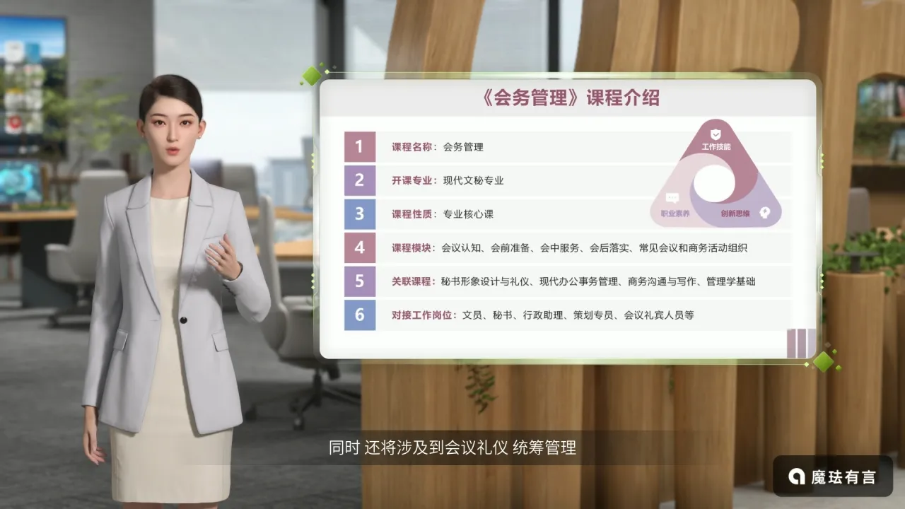 此视频用于大学会务管理课程介绍。以3D数字人微课的形式进行。