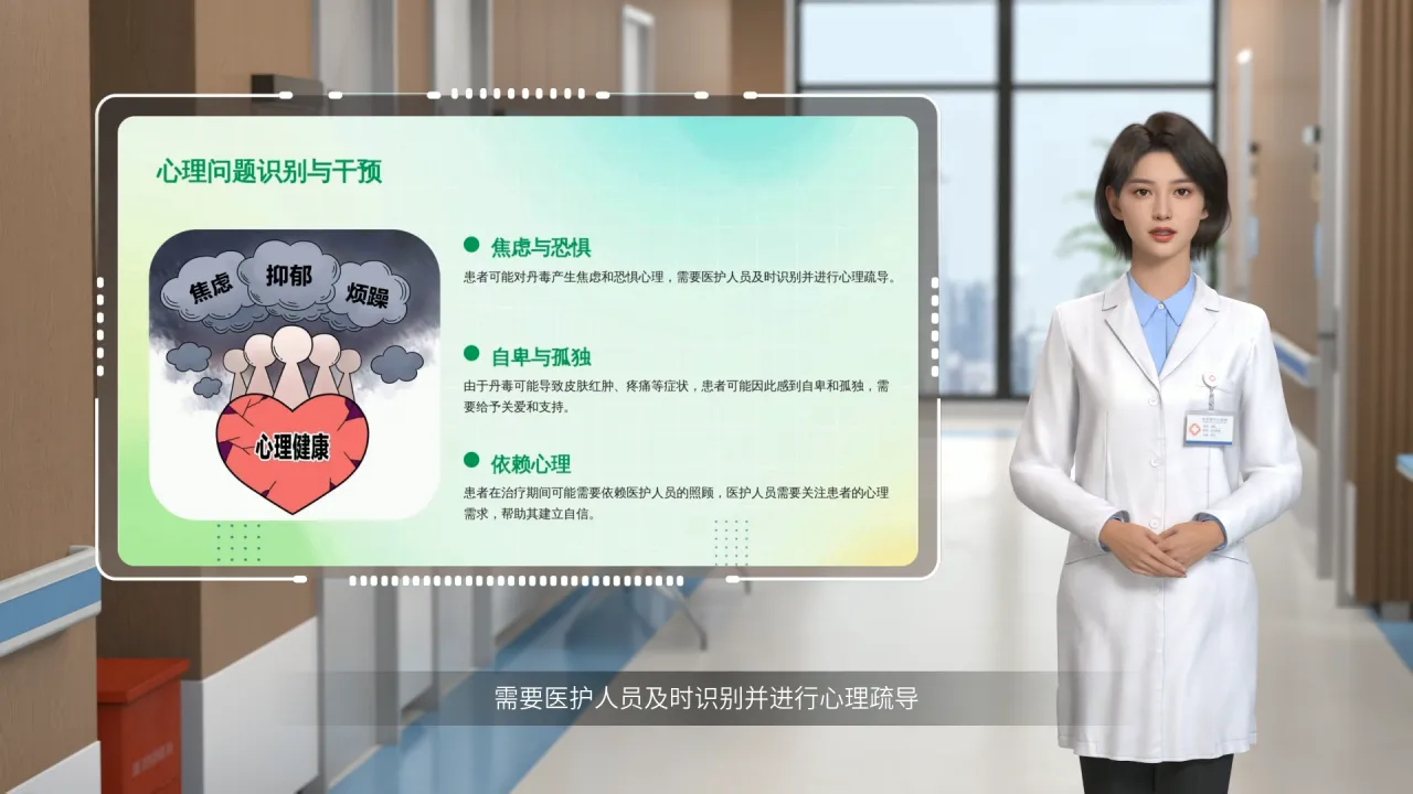 在整个患病期间一定要注意患者的心理情况。患者可能对丹毒产生焦虑和恐惧心理,需要医护人员及时识别并进行心理疏导。再者由于丹毒可能导致皮肤红肿、疼痛等症状,患者可能因此感到自卑和孤独,需要给予关爱和支持。在整个治疗期间医护人员需要关注患者的心理需求,帮助其建立自信。