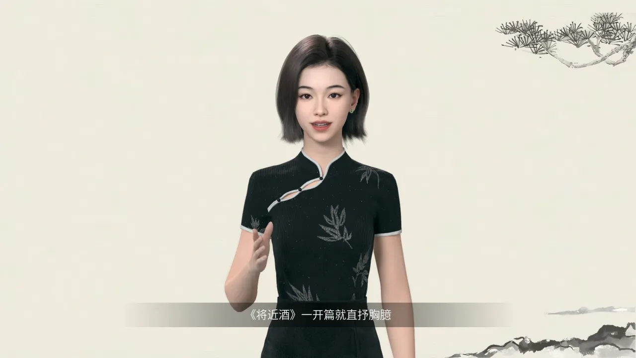 各位亲爱的观众朋友们,大家好!今天,我站在这里,想和大家一同探讨一首脍炙人口的古诗词——《{将:qiang1}近酒》接下来,我{将:qiang1}从几个方面为大家解析这首诗的魅力所在。 首先,让我们看看诗中的情感表达。《{将:qiang1}近酒》一开篇就直抒胸臆:“君不见黄河之水天上来,奔流到海不复回。”这里,李白用黄河水的奔腾不息象征人生的短暂与宝贵,提醒人们珍惜时光。紧接着,“君不见高堂明镜悲白发,朝如青丝暮成雪。”通过对比清晨黑发与傍晚白发的变化,更加强烈地表达了时间流逝之快,人生易老的主题。整首诗中,李白不仅表达了对美好生活的向往,也流露出对现实世界的无奈与抗争,展现了他独特的生命观。其次,我们来看看诗的语言艺术。李白在这首诗中运用了大量的比喻和夸张手法。“烹羊宰牛且为乐,会须一饮三百杯。”这里的“三百杯”显然是一种夸张的说法,用来强调诗人饮酒作乐的决心与豪情。此外,他还巧妙地运用了对仗、排比等修辞技巧,使得整首诗读起来朗朗上口,富有音乐美感。 最后,我想谈谈诗的文化内涵。《{将:qiang1}近酒》不仅是李白个人情感的抒发,也是唐代社会文化风貌的一个缩影。唐代是中国历史上一个开放包容的时代,人们崇尚自由、热爱生活,这种时代精神在李白的作品中得到了充分展现。同时,《{将:qiang1}近酒》还反映了唐代文人士大夫阶层的生活方式和价值观念,即追求精神上的超脱与自由,反对世俗束缚。1总之,《{将:qiang1}近酒》是一首充满激情与哲理的诗篇,它以其独特的艺术魅力吸引着一代又一代读者。无论是对人生的思考,还是对美好生活的向往,都在这首诗中得到了淋漓尽致的展现。希望今天的分享能够让大家对这首诗有更深的理解和感悟,感谢大家的聆听,祝大家拥有美好的一天!
