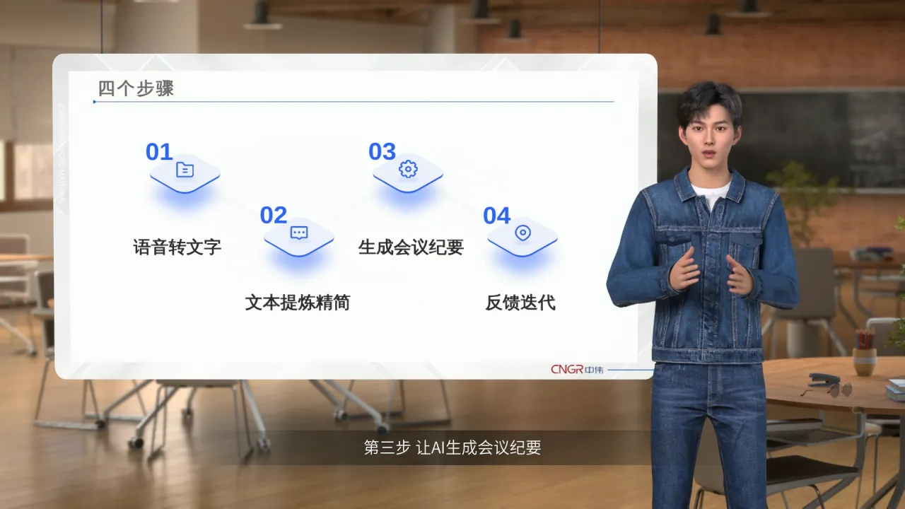 3D数字人教您如何利用AI工具将会议语音一键转换为文字,并自动生成会议纪要。