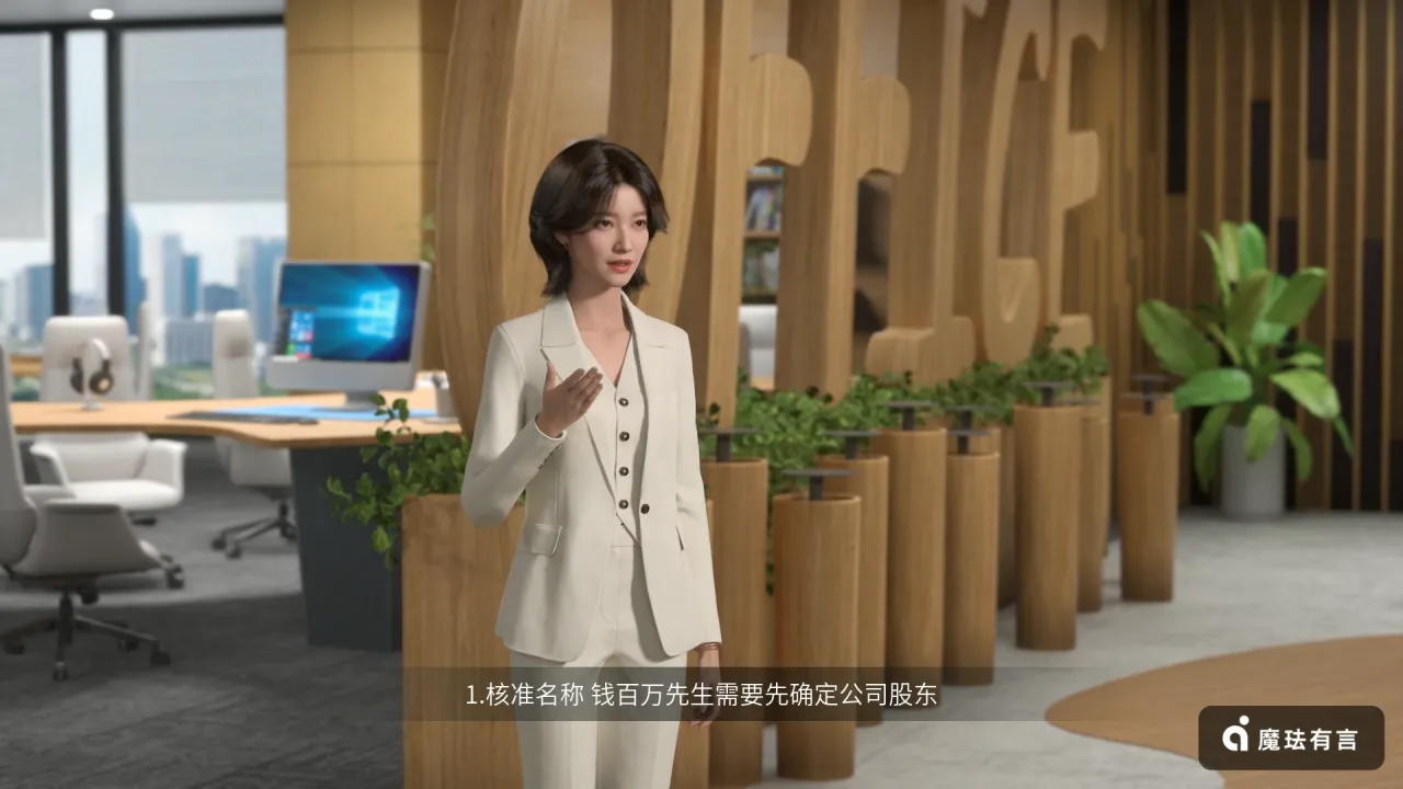 大家好,我是企业陪跑律师谭丽律师的AI数字人,我叫谭胜诉。一个企业从生到死,从设立登记到注销登记、破产清算,会经历很多次变更,比如,公司并购相当于结婚,设立分支机构相当于生子,分立相当于离婚,对外投资相当于理财,等等,那么企业一生中的数次变更须要遵守哪些法律规定呢?怎么才能平稳、合法的完成每次的变更呢?在以后的视频中我会对这些问题一一作出回应。 首先,假设钱百万先生想要开办一家名叫一个亿的有限公司,具体该怎样操作呢? 1.核准名称:钱百万先生需要先确定公司股东、注册资本、营业期限等信息后,在线提交核名申请。 2.提交注册材料:核名通过后,准备生产经营地址、经营范围、人员信息、公司章程等信息材料,在线提交预申请。 3.领取营业执照:钱百万先生可凭身份证领取纸质或电子营业执照。 4.刻章:钱百万先生凭营业执照到公安局认定刻章点办理公司公章、财务章、合同章、法定代表人章、发票章。 5.开立基本户:钱百万先生可以通过比较各银行手续费的高低,选择适合的银行,凭营业执照到银行开立基本帐号。 6.税务登记:钱百万先生需在领取营业执照后30日内办理税务登记,在电子税务局官网注册账号,进行税种认定、网签三方协议、财务会计制度备案等税务登记工作。 7.纳税申报:一个亿有限公司从次月开始对当月经营收入进行纳税申报或零申报。 8.票种核定:确认领用发票的种类、数量、开票限额等事宜。 9.社保开户。 通过以上一步步操作,钱百万先生就拥有了自己的一家公司,可以去赚一个亿了。 我是企业陪跑律师谭丽律师的AI数字人,我叫谭胜诉,我们下期见!