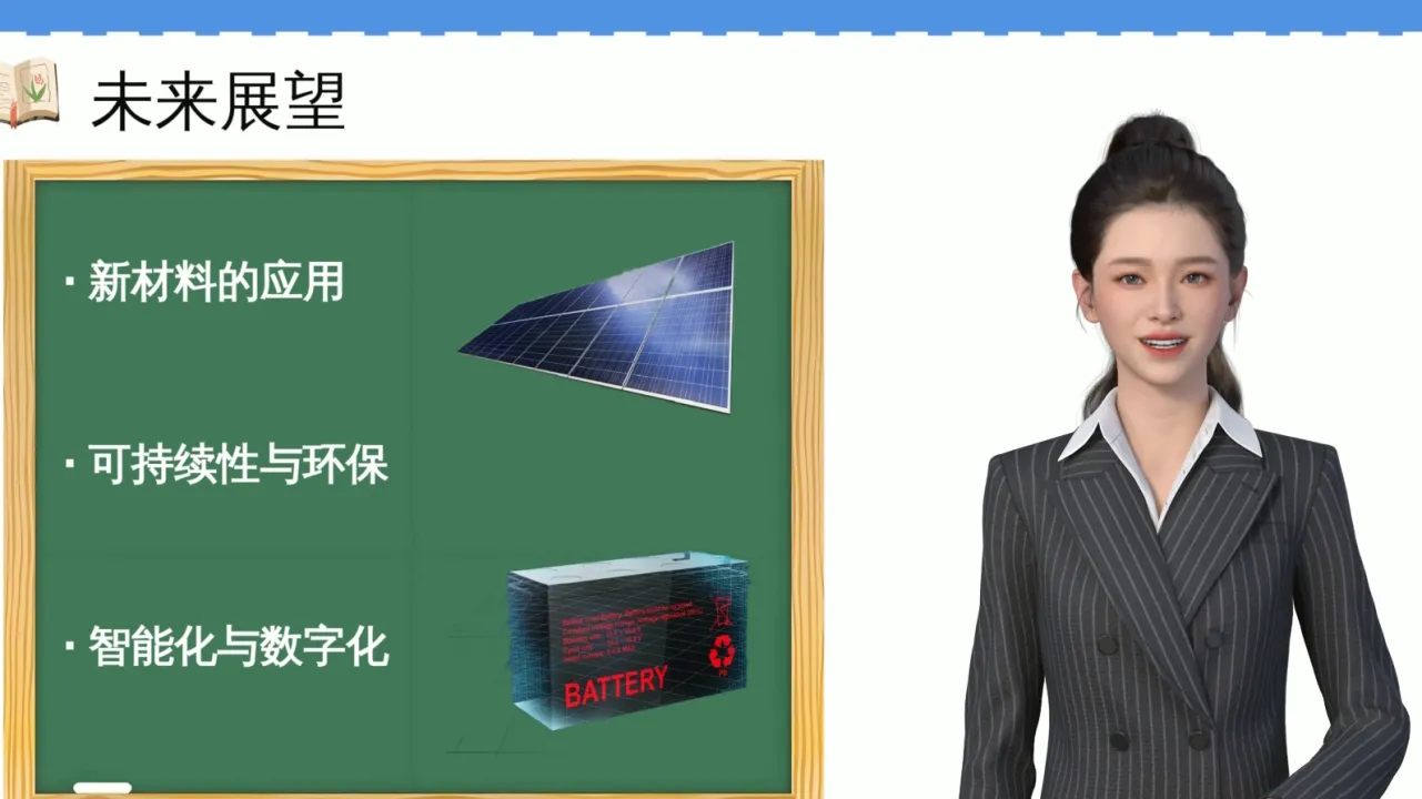 未来电池技术将越来越依赖于新材料的研发, 例如固态电池和纳米材料 ,这些材料将显著提高电池的能量密度和安全性 ,可持续性与环保, 随着环保意识的增强, 未来电池的生产和回收将更加注重可持续性, 采用可再生材料和绿色制造工艺将成为行业趋势, 智能化与数字化 ,未来电池技术将与智能化和数字化相结合, 通过物联网和大数据分析实现电池的智能管理和优化, 提高使用效率和安全性。